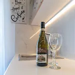 Een complete keuken met een koffie/theezetapparaat, een oven en keukengerei is aanwezig in dit appartement, samen met koffie- en theevoorzieningen.